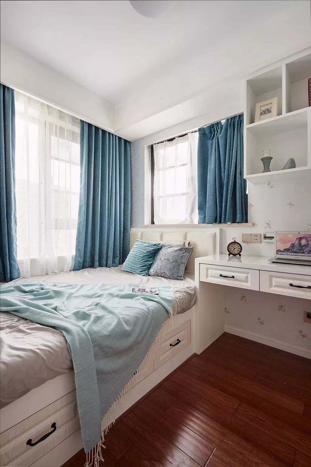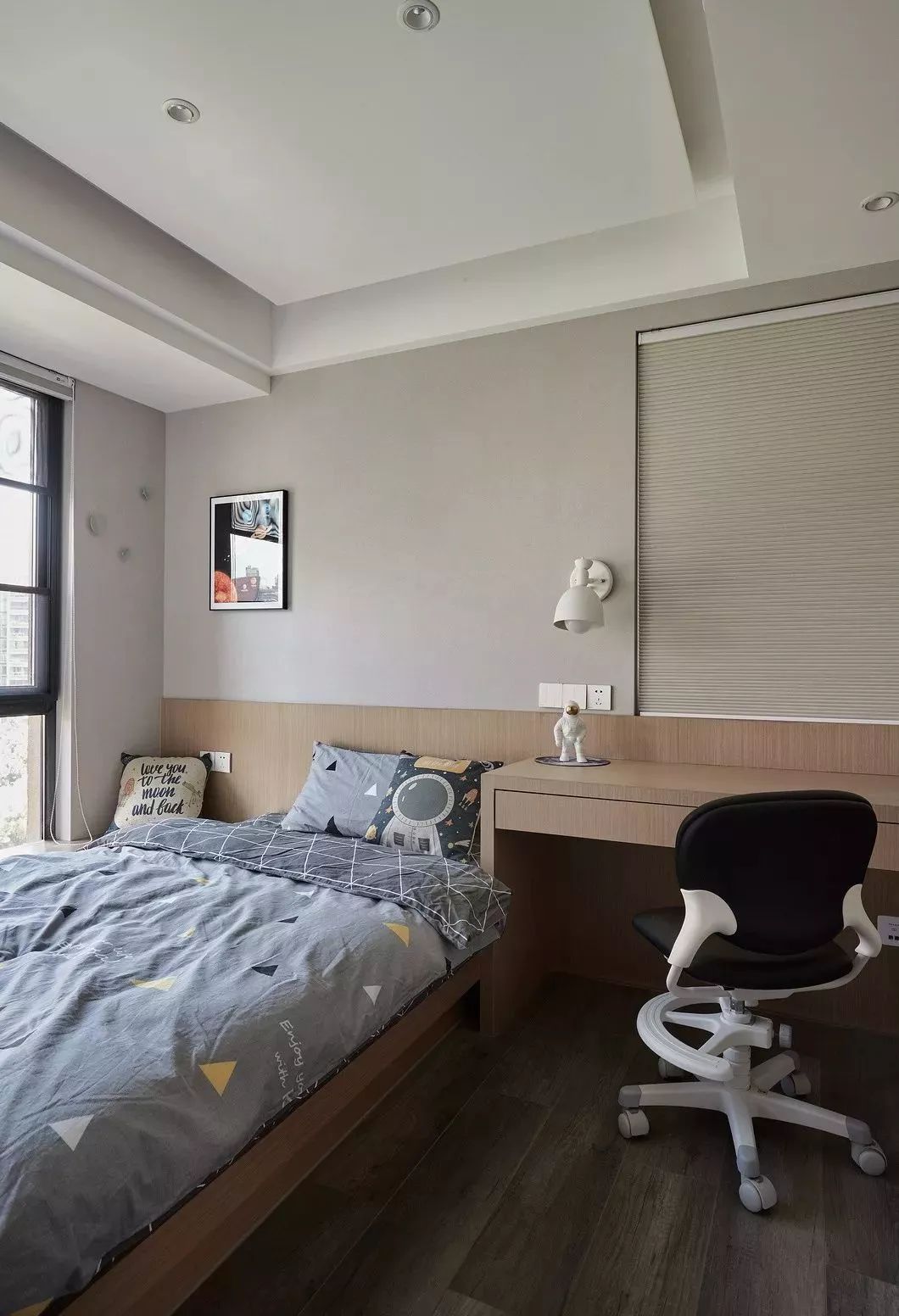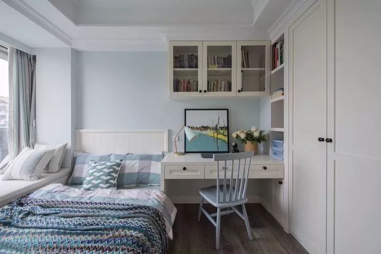 5、榻榻米床+衣柜组合设计,书桌这采用成品的设计,整体更加的舒适。