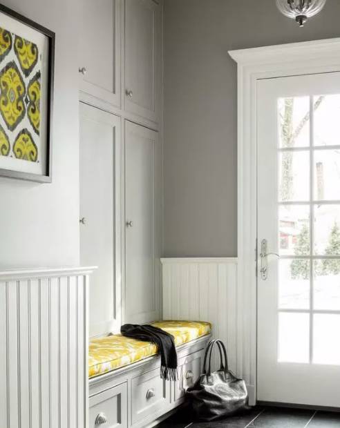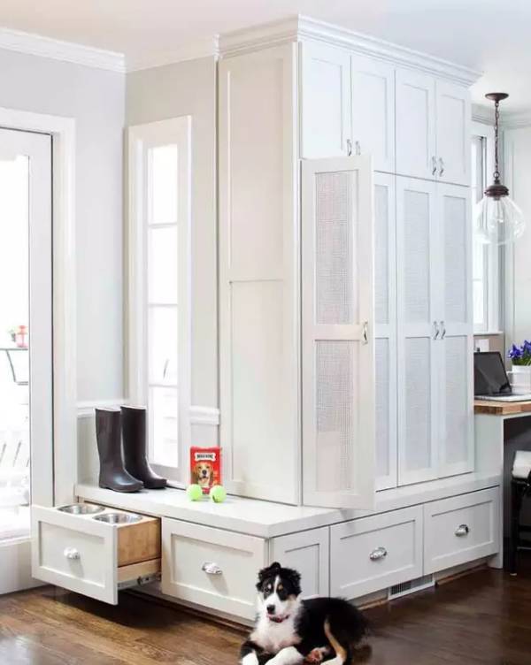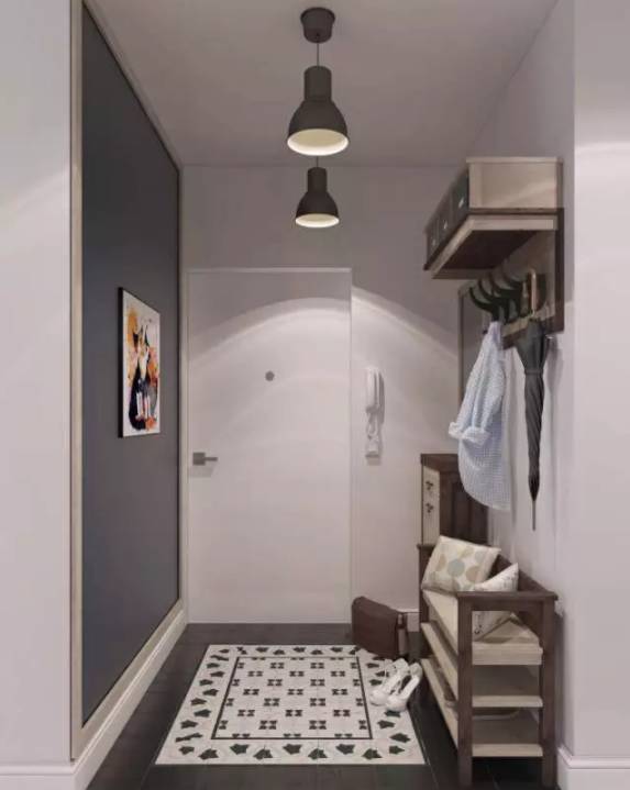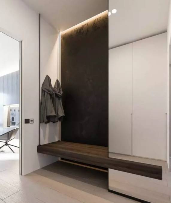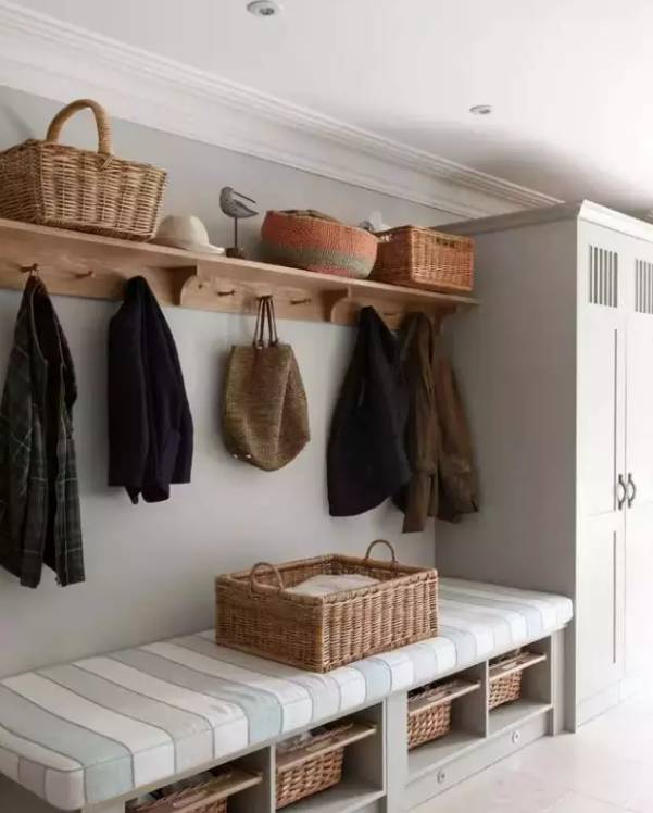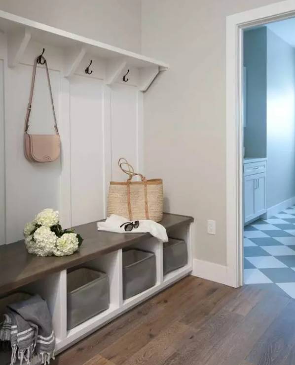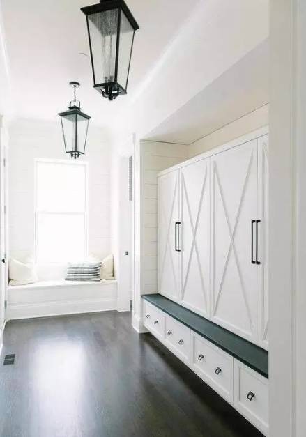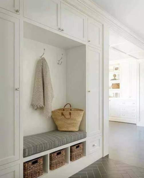 在入门处设计一个简单实用的柜体,就可以为我们解决换鞋和收纳的难题了。