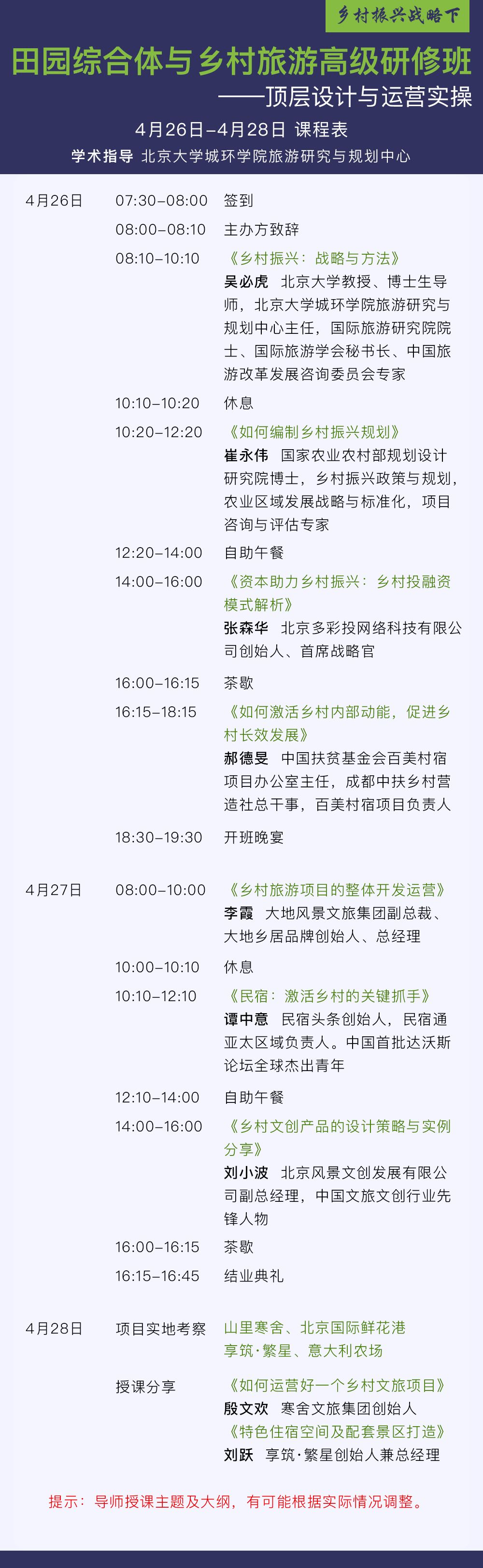 具体安排:见下图“乡村振兴高级研修班课程表”