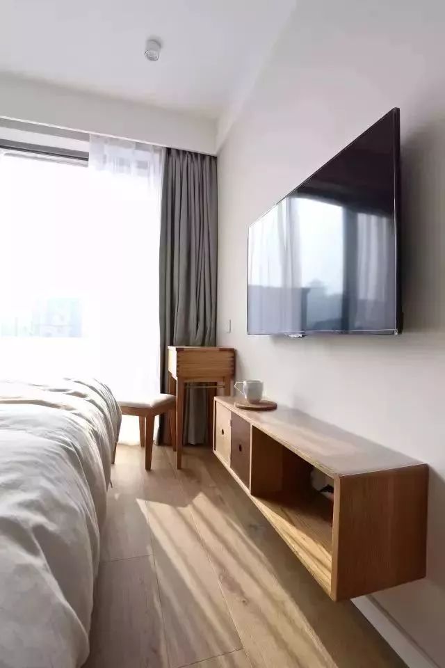 床尾是悬挂式的电视柜+梳妆桌。