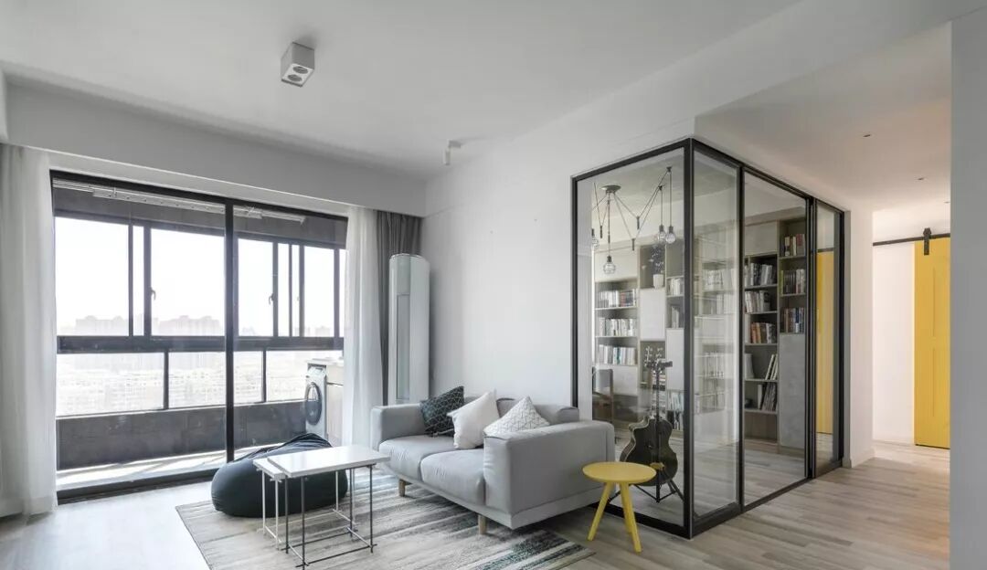 家里房间不够,完全可以从客厅里偷一部分空间,用玻璃隔出一个房间。搭配上窗帘,可自成一室,不影响客厅的采光和通透。