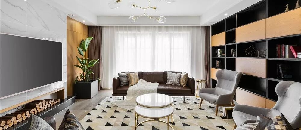 如果你的客厅开间大,不妨试试打破这个固化认知,试试沙发和墙面分离,让空间更加灵活的同时,还可以承担额外的其他功能。