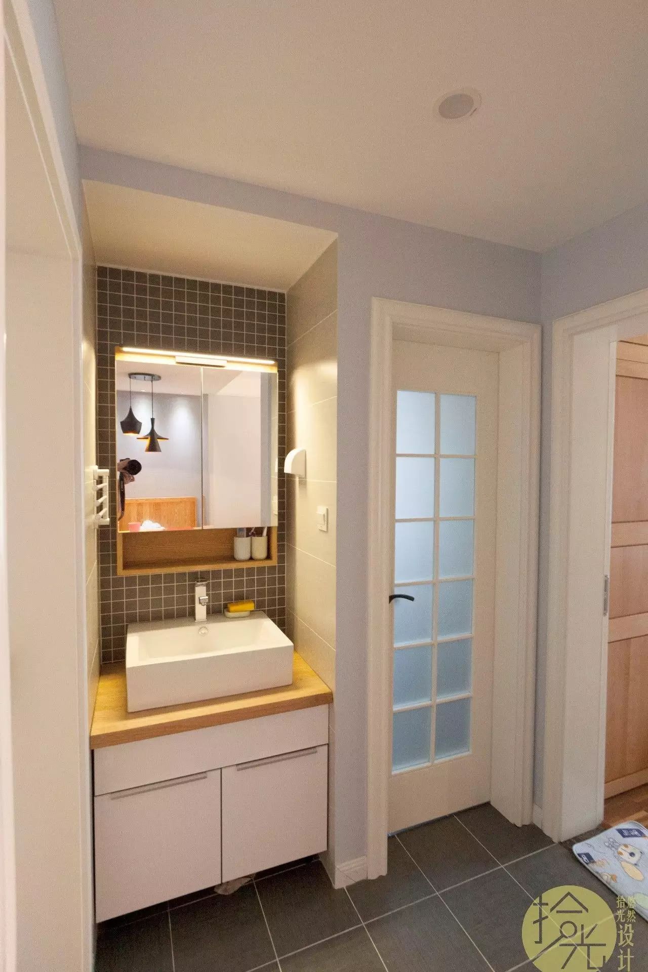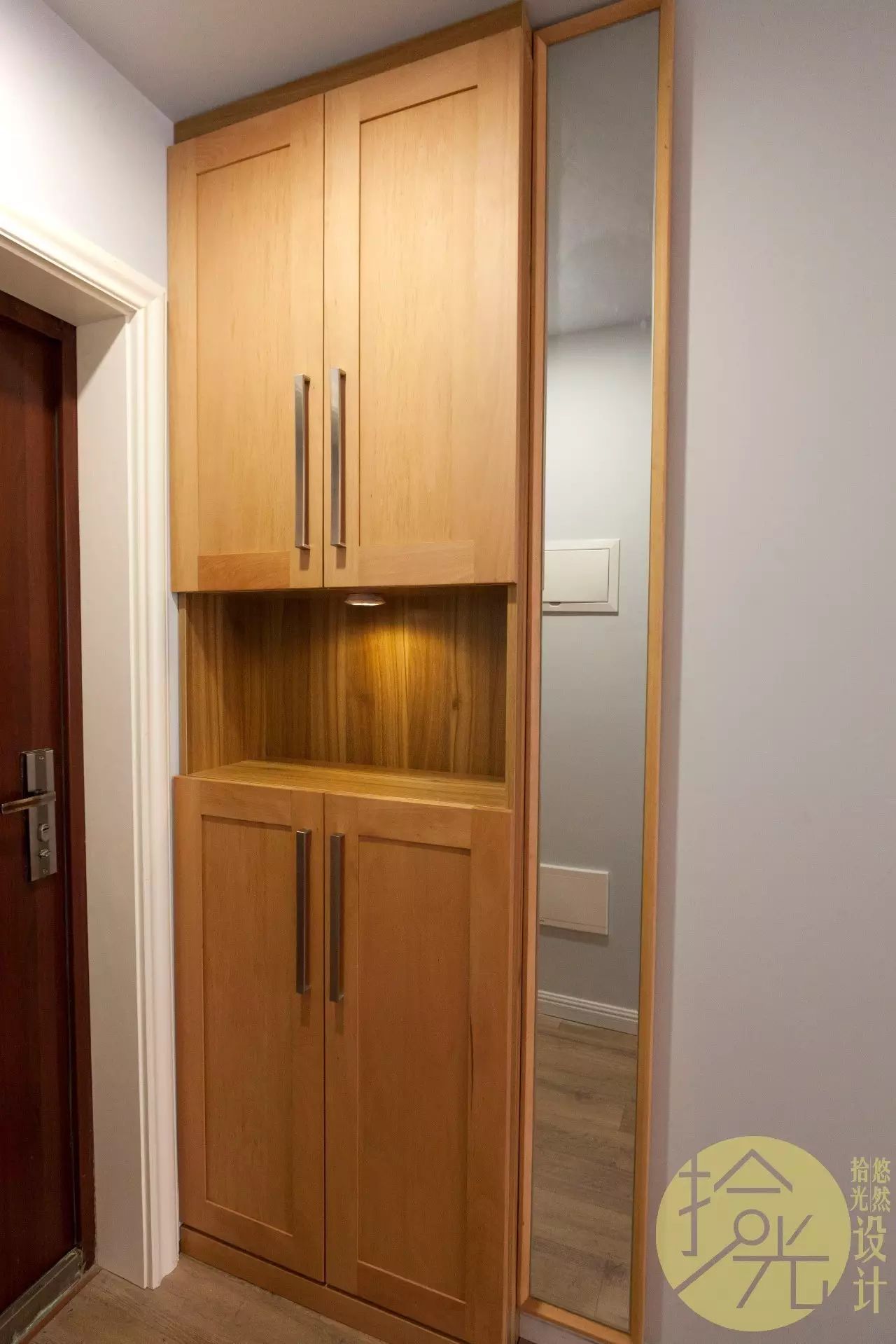 入户刚好可以嵌入一个鞋柜,旁边做了个全身镜,出门照一照,没毛病