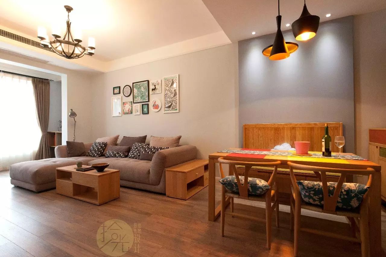 我们取名木色,是因为整个房子运用了大量的木色,有橡木、有白蜡木、有柞木等等、配上灰蓝和咖,会让整个家如沐阳光,温馨舒适。