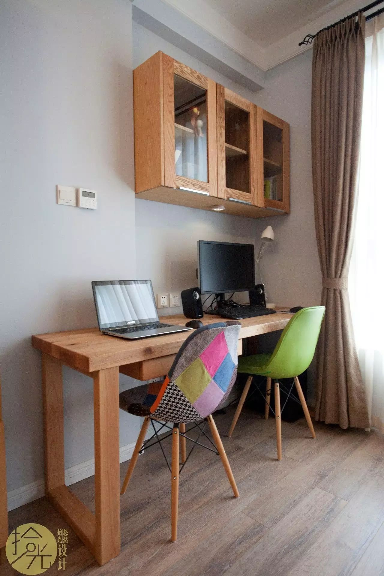 双人书桌,一个台式一个笔记本,刚刚好。