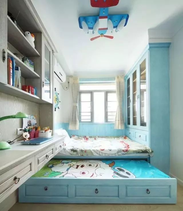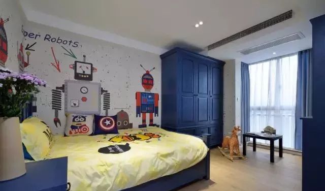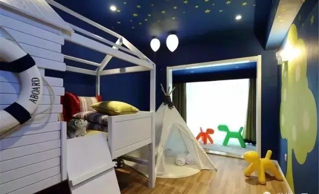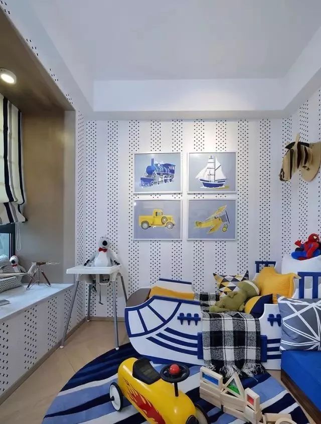 ▲ 一般儿童房的色调会比较鲜艳比较丰富,男孩子房间用蓝色调的比较多