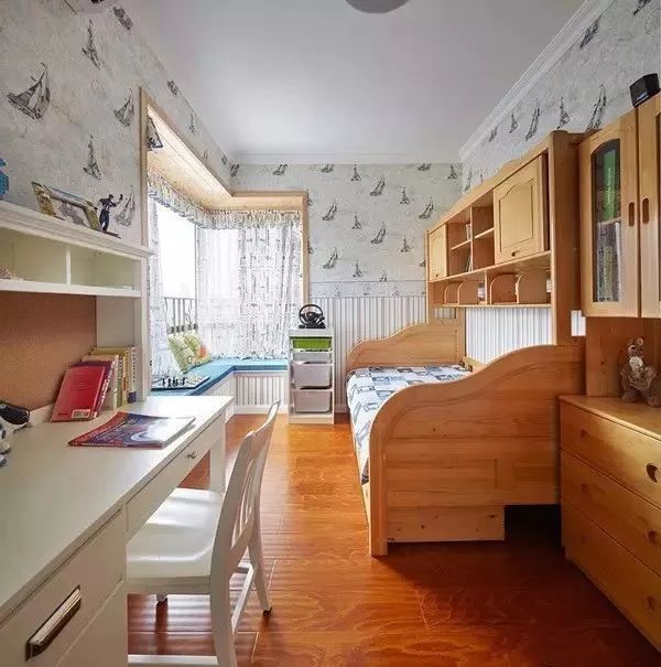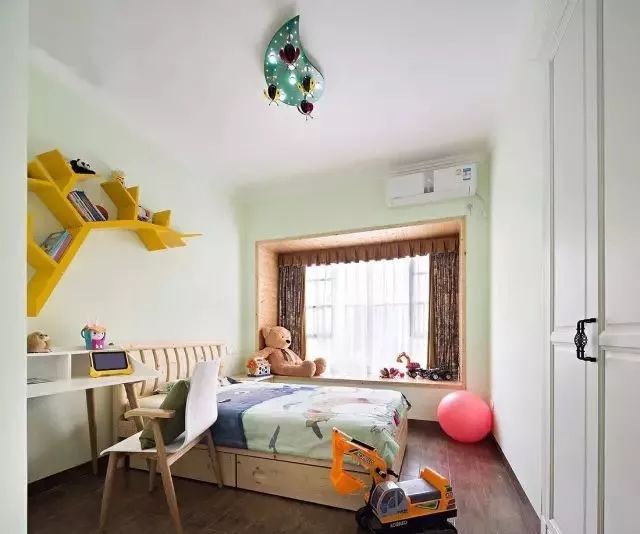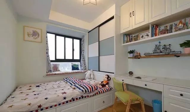 ▲ 除了衣柜和书桌,儿童房的收纳也是必须考虑的,比如这个床侧面自带收纳,增加了房间整体的收纳能力