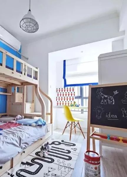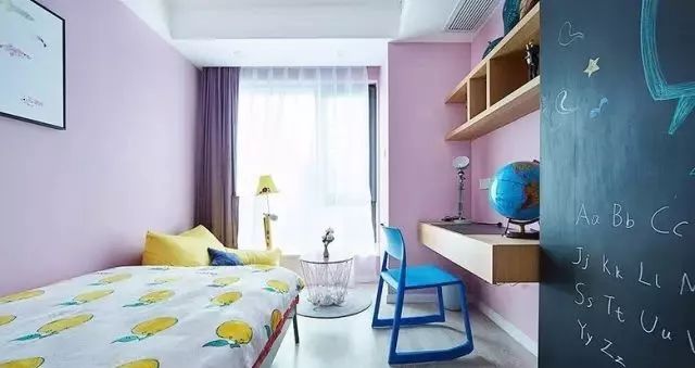 ▲ 黑板墙也是儿童房不错的元素,可以让孩子涂涂画画,开发孩子对绘画的兴趣,关键是,有个地方让孩子涂就不至于毁了其他所有墙面