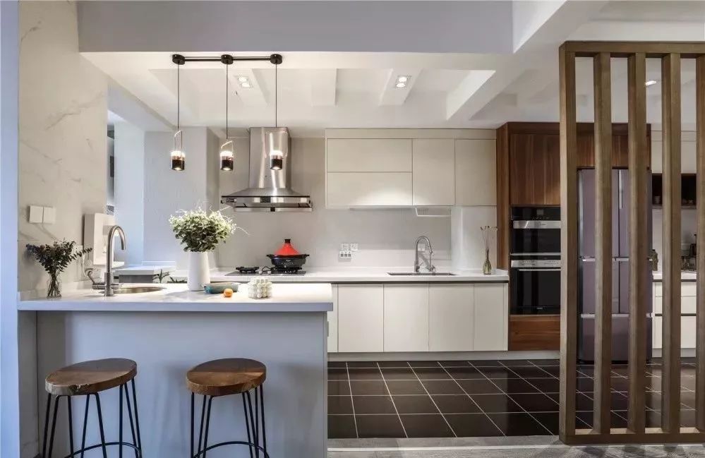 打造出整体式厨房风格,设计时预留家电的空间,再把家电在嵌入到适宜位置,不仅告别家电杂乱感,使用起来也人性化,也增大了使用空间。