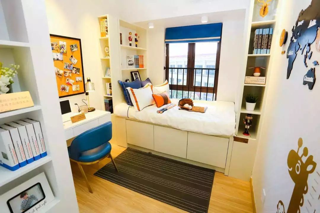 设计在儿童房可以很好的整合出使用空间,原本可能塞不下的书柜也轻松布置好了。