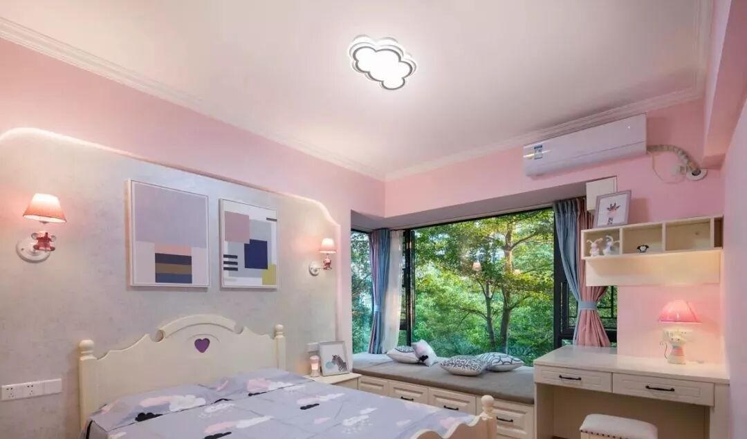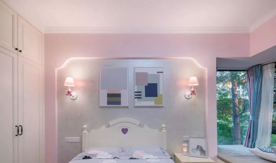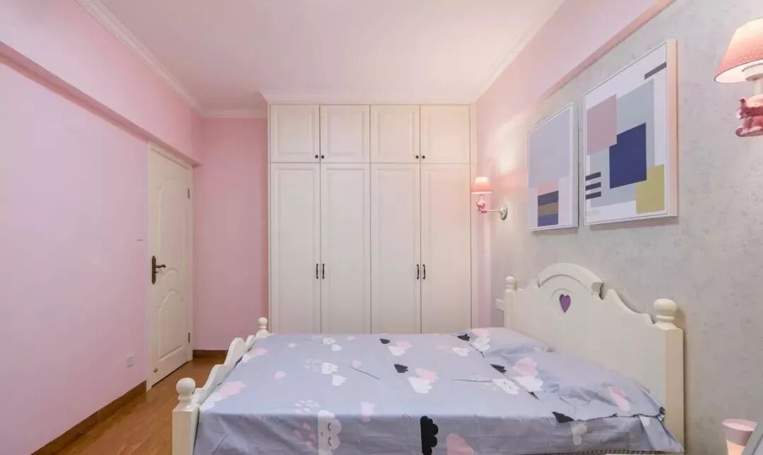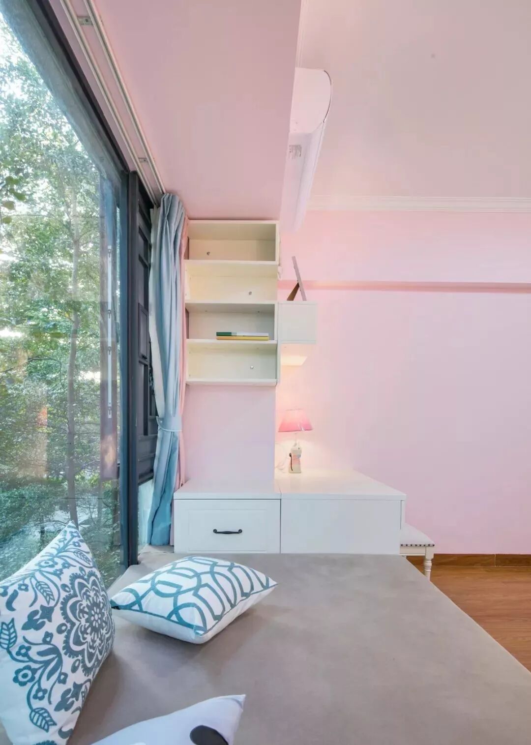 白色的床、衣柜等家具中和了粉色甜腻,优雅耐看,女儿再长大一些也不会觉得幼稚。