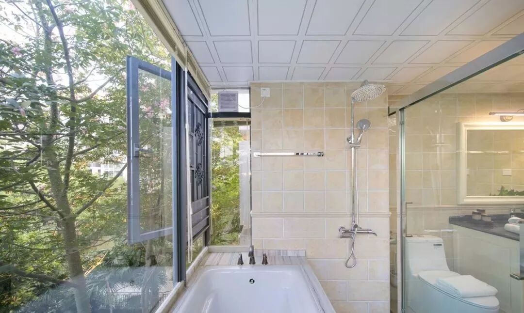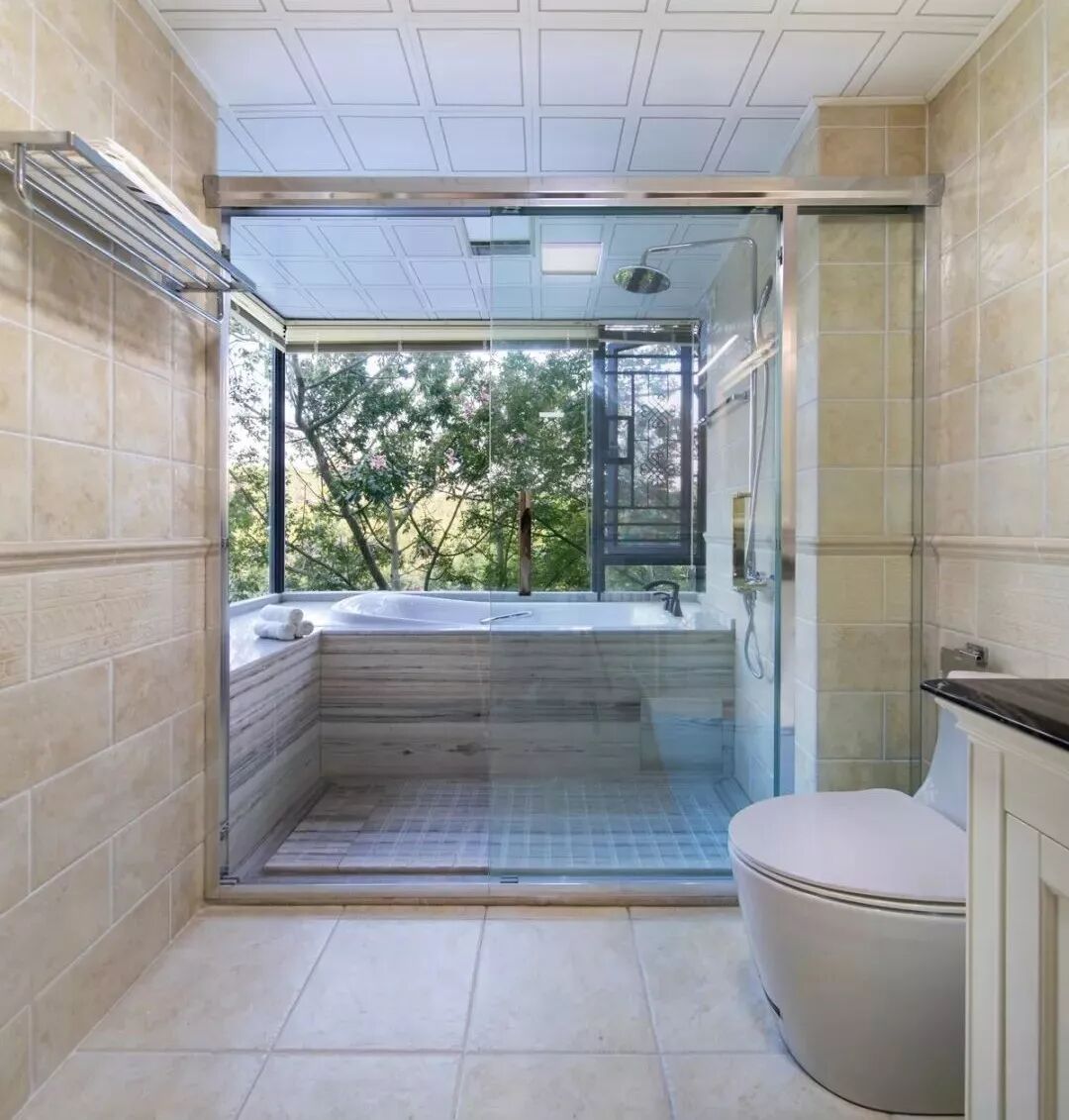 衣帽间对面是主卫,宽敞明亮的主卫,窗外的风景很美。透明的玻璃隔断保证空间的通透感。