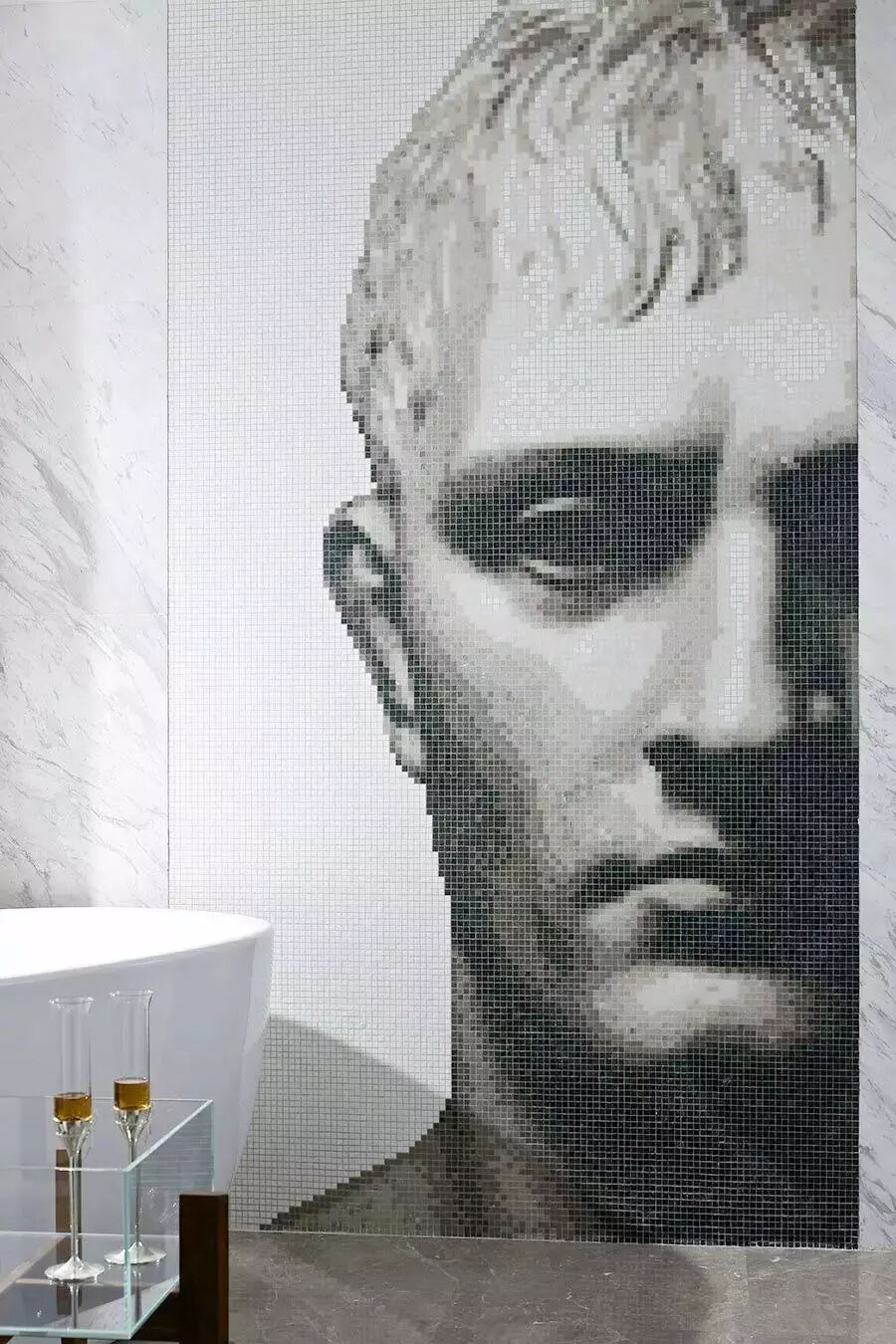 浴缸旁边的马赛克造型墙,将人物演绎得栩栩如生,它重现了著名雕刻家Antonio Canova的新古典主义的雕塑,将整个空间衬托得更加优雅,更加艺术。