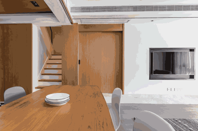 楼梯原木+玻璃材质,让空间保持通透自然。