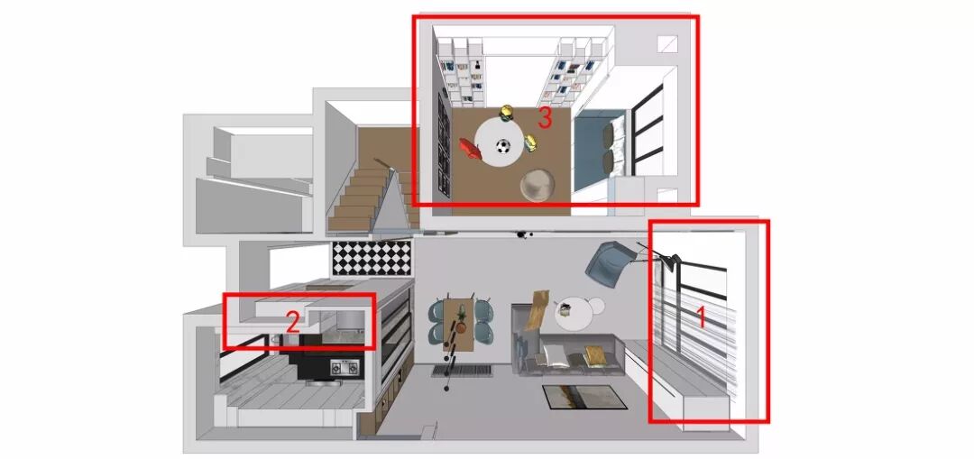 ❷摆上小书桌,大人可以在这里辅导孩子学习,做小教室。