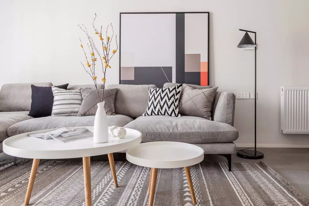 编织地毯搭布艺沙发,增添待客区的舒适感。