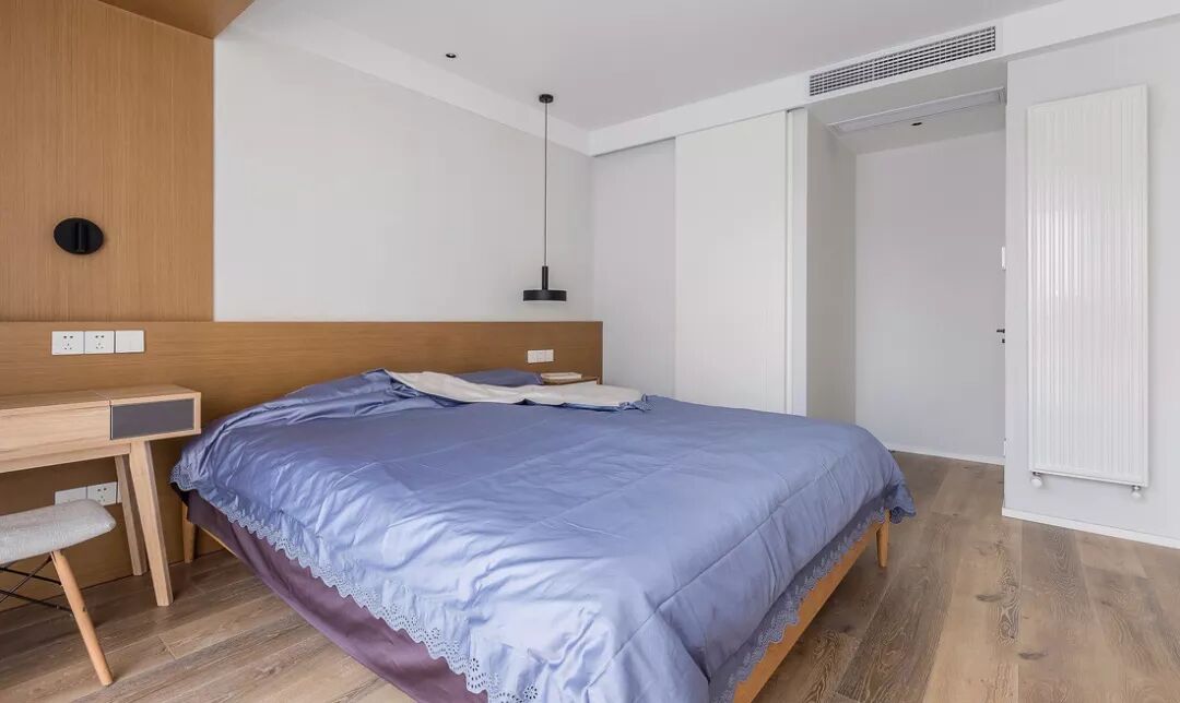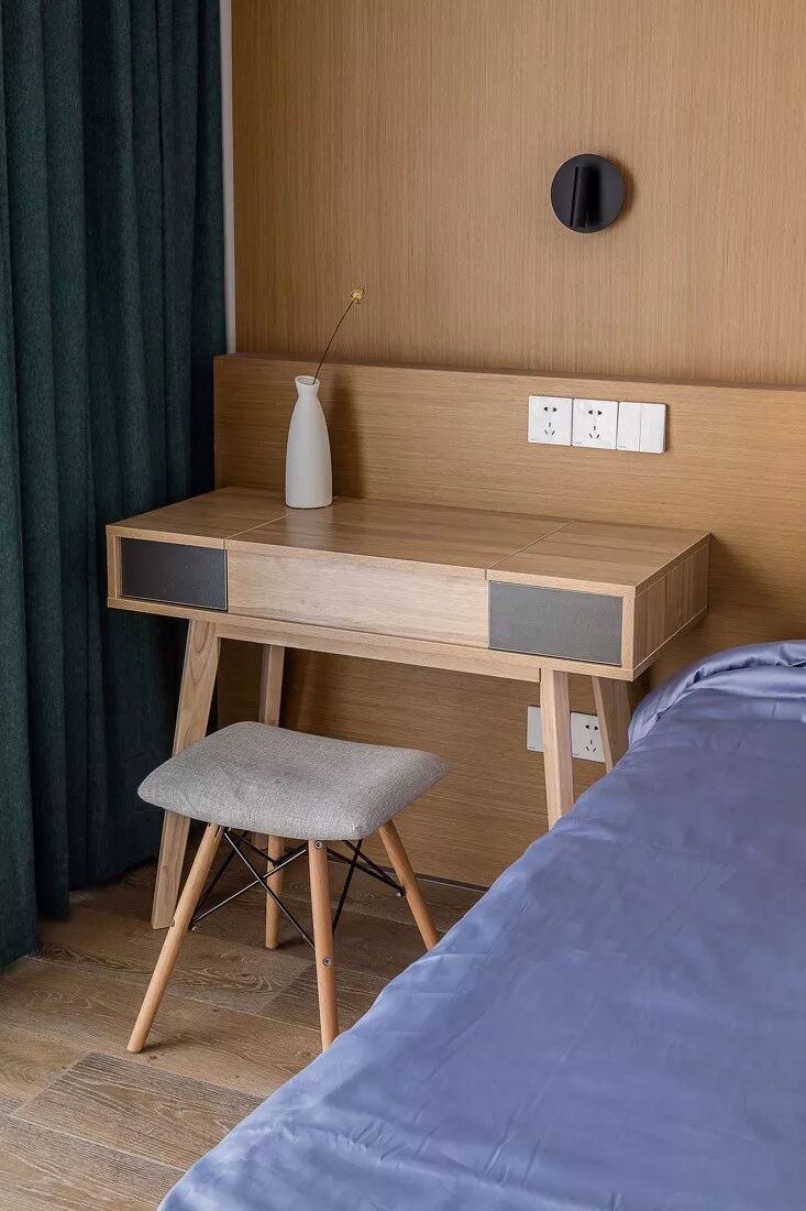 整体简约造型,质朴大方,木饰面床头很有温馨感。