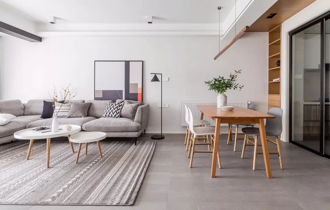 600*1200的灰色亚光砖搭配榉木实木餐桌,简约中透着不简单的品味,和不过时的美感。