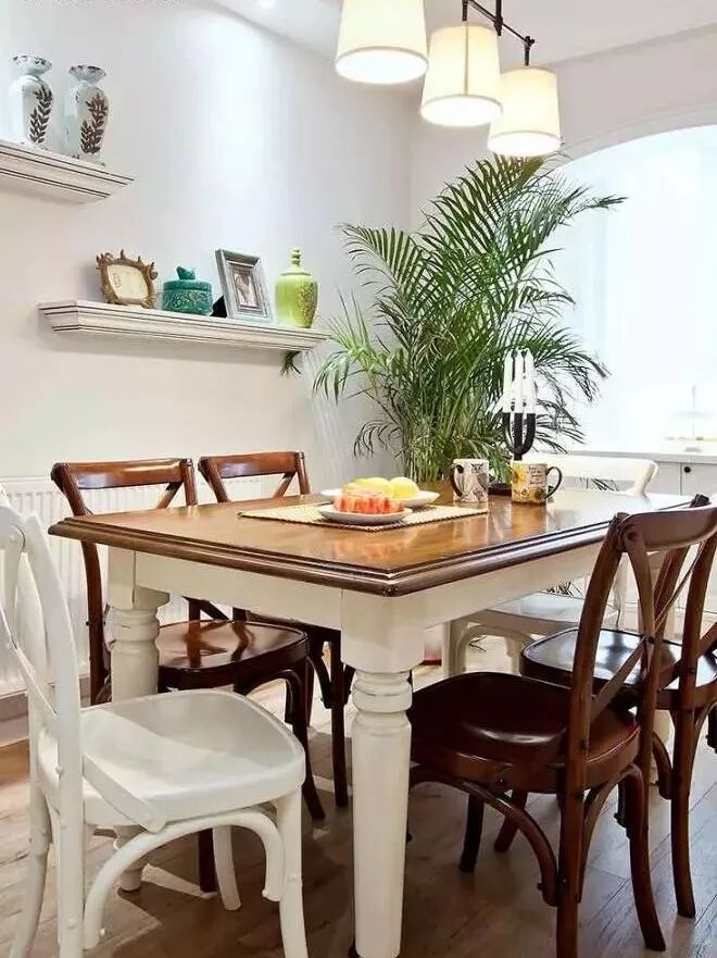餐厅内做了内窗,连接了厨房,阳台处也做了拱门,形式感很强。