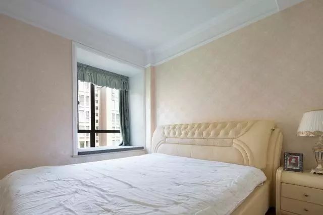 卧室,更是高贵优雅,软包装的床头,很有气质。利用靠主卫的墙面打造了L形置顶大衣柜,美观又实用。
