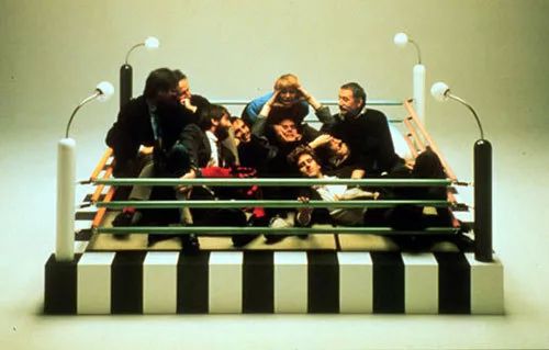 Ettore Sottsass,这位与无趣设计作对的大师。在1980年的12月,已然63岁的他和一群性格古怪的设计文青在公寓里聚会,就着酒精和尼古丁的刺激,听着Bob Dylan的那首《Stuck Inside of Mobile With the Memphis Blues Again》。最后,他们一拍即合,结成了一个随性怪诞的“孟菲斯(Memphis)”设计小组。