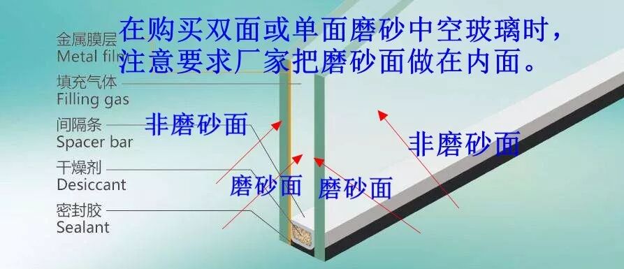 因为价格原因(中空玻璃双面磨砂或单面磨砂肯定比单层玻璃的磨砂贵),可能你会选择单层磨砂玻璃,也不是不可以,但安装时一定要注意将磨砂面朝室内安装,风险可控嘛!