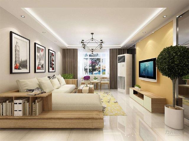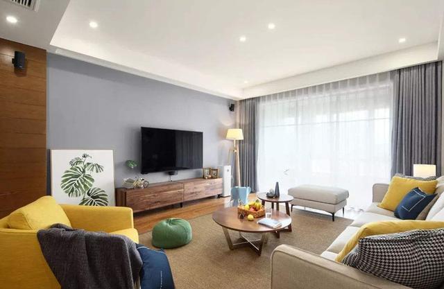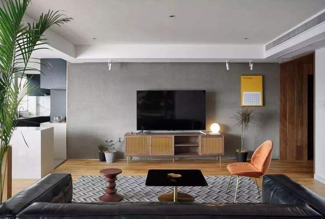 姜黄色作为电视背景墙也超级亮眼,仿佛阳光洒进客厅。