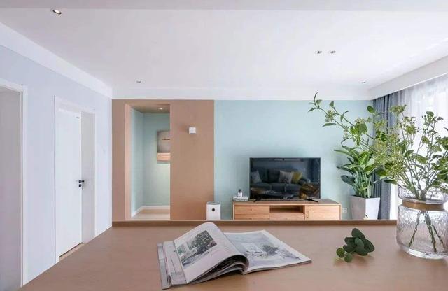 电视背景墙,要我说最简单耐看的还是乳胶漆的,家里正常使用的乳胶漆,加入一些自己喜欢的颜色,刷在电视墙上即可,200元就能搞定。如果颜色过几年不流行了,或者自己看腻了,还能换,多好呀。