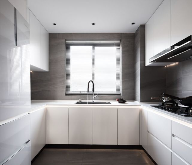 中厨延续传统的功能性能,U型设计,融入吊柜、地柜组合,电器采用嵌入式的安装方式,将电器收藏至柜内,保持厨房空间的整洁干净。