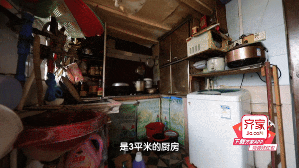 改造前,这个集众多功能于一身的4平米区域,被塞得满满当当。厨房空间狭窄,几乎没有操作台面。菜只能一道一道做,人也只能容纳一个,梁家斌想要帮忙,更多的是适得其反。