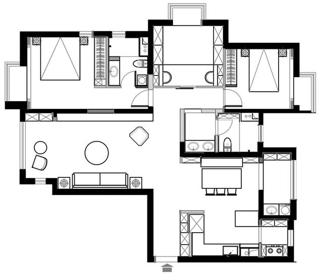 金色搭配在蓝灰装修空间中,中和了原本的沉闷和单调,更具有张力。在白灰色大背景下增加金色,让空间更有质感。