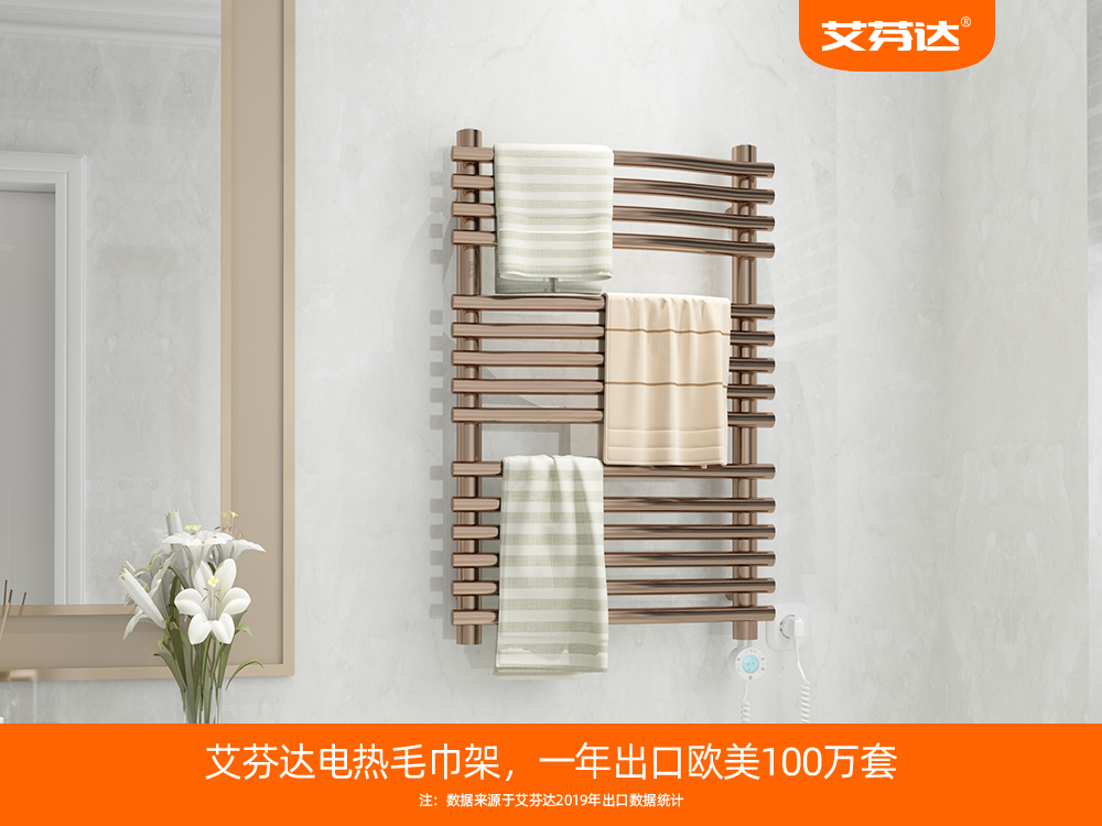 不仅如此,艾芬达电热毛巾架还率先实现了APP互联、智能操控,引领智能家居新潮流。在电热毛巾架成为当今主流消费产品的今天,艾芬达推出多款针对国内卫浴特点的原创设计款式,以高端定位实现了在京东、天猫等多个平台上爆发式增长。受益于线上布局完善、产品品类丰富及品牌优势突出,艾芬达电热毛巾架成为当之无愧的业内领航者,助推行业向着高端化发展。