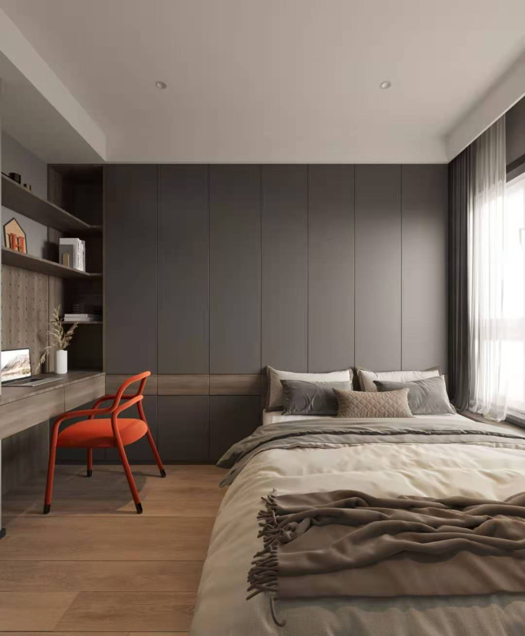 本案的卧室采光非常好,所以卧室的主体采用了白色设计,这样是为了营造出更高级的暖意,也希望业主新婚之后的生活阳光灿烂。