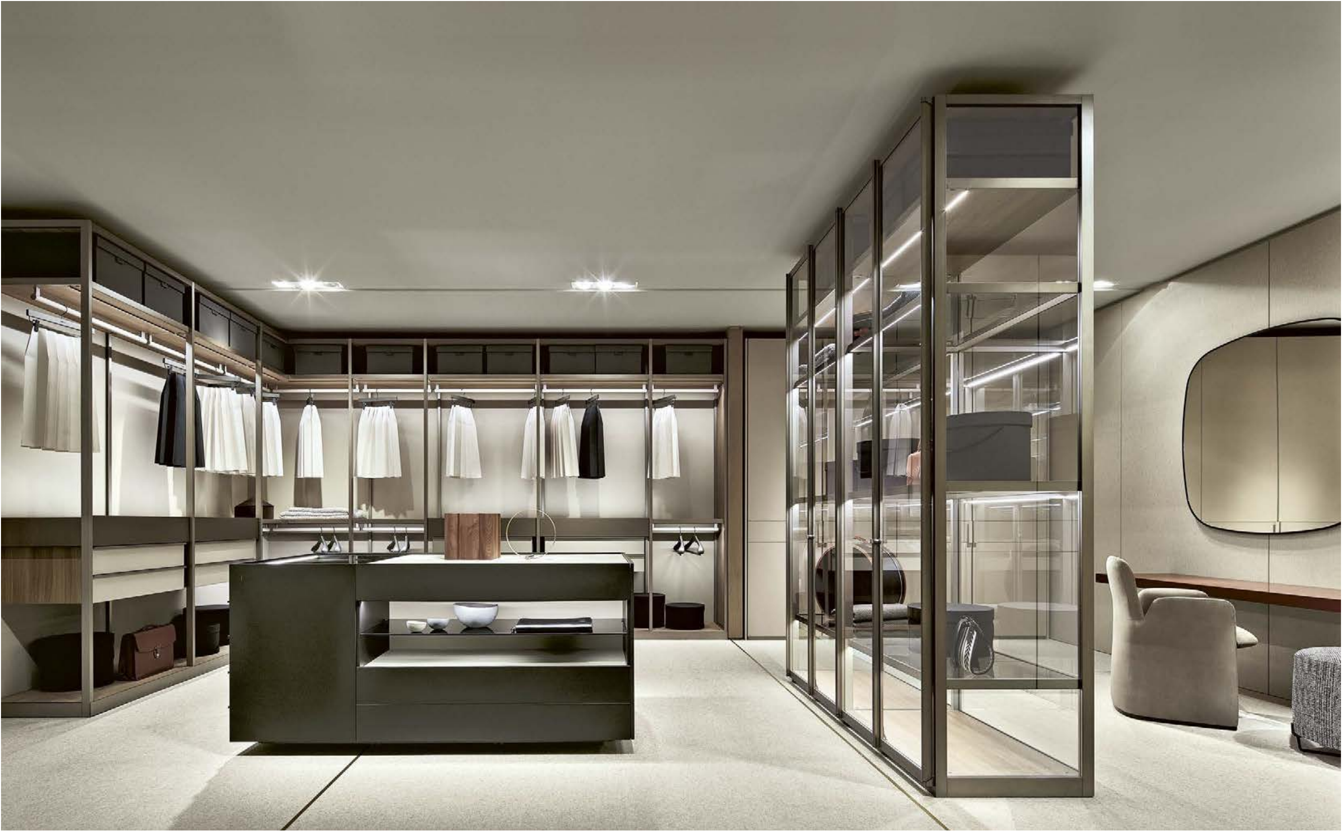 玻璃衣柜,懂得充分运用玻璃的透光性, 使其在各种角度及光源下 都能映照出不一样的光影。 纯净而平滑的质地,极简奢华的设计, 营造出一种极具张力的美感。